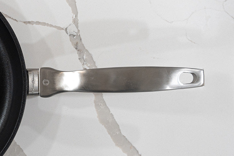 CXD's new brushed stainless steel handles combine modern elegance with thoughtful engineering. Featuring a sleek finish with a curved, ergonomic shape, our handles are seamlessly mounted without rivets. This rivet-free construction ensures an uninterrupted cooking surface, making cleanup effortless and helping prevent food and bacteria buildup often found around traditional handle mounts. Oven safe up to 500°F and designed for optimal balance and comfort, these handles enhance both the aesthetics of your home kitchen and the hygiene of your home cooking.