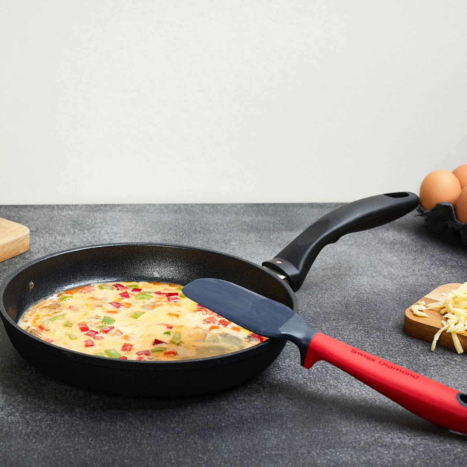 Embark on a culinary journey with our accessories line, enhancing your kitchen experience. Our turner spatula, designed for seamless food handling, and the precision serrated bread knife ensure effortless slicing. The sturdy glass lid, with a stainless steel lip, prevents boil-overs, allowing easy monitoring. Elevate your skills with Swiss Diamond Accessories, where each tool brings superior performance and convenience. Whether flipping, slicing, or simmering, our collection has the perfect tool for every culinary endeavor. Transform your cooking routine with Swiss Diamond.